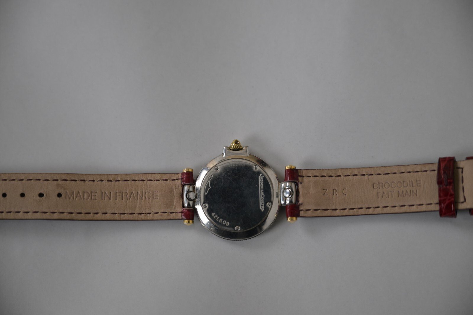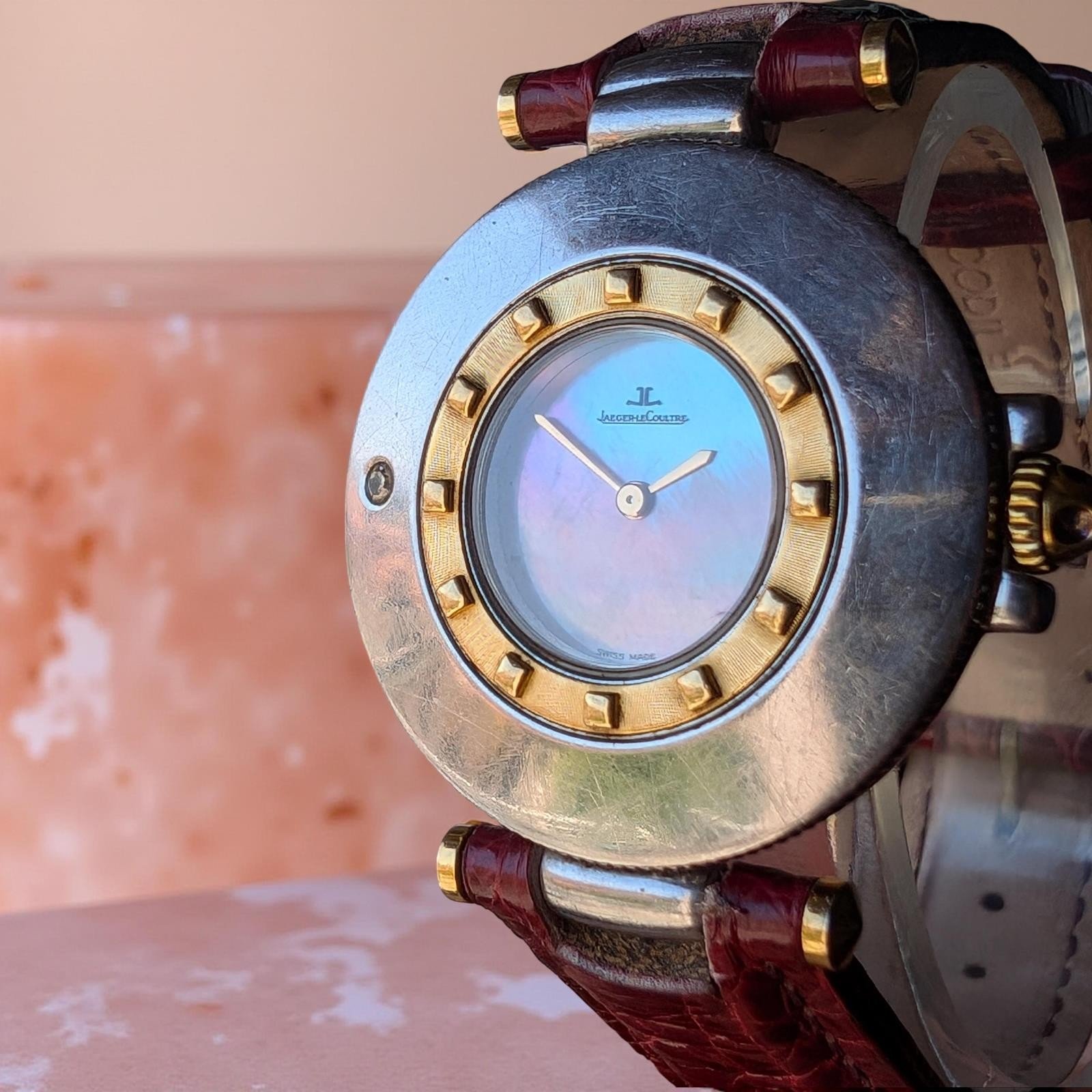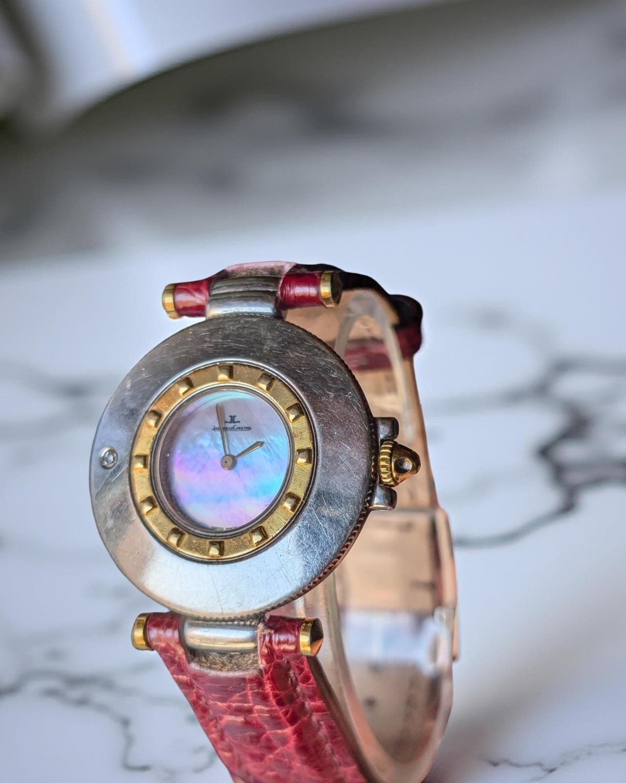 💎 Description: This elegant Jaeger-LeCoultre Rendez-Vous is a refined ladies’ luxury watch crafted in stainless steel and 18K yellow gold . Featuring a delicate mother-of-pearl dial and minimalist design, it blends timeless elegance with Swiss precision. The watch is mounted on a high-quality deep red crocodile-style leather strap , offering a bold and feminine touch.